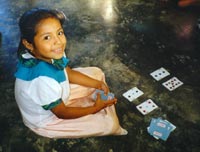 - In "Concentration," a group of children lays a deck of "word cards" face down. Each card contains a word, and each card also has a matching card. During a turn, each child may pick up two cards. After picking up each card, the child must say the word out loud. If the child finds a match, he or she may keep the two cards. The child with the most matches wins. This game reinforces memory and reading words by sight. The teachers made decks of word cards during the workshop. These decks may be used over and over.
