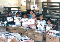 Boxes of donated books to be distributed.Share our activities