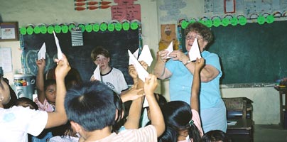 Volunteer Betty Garber teaches students how to fold origami frogs. Betty Garber, Santa Cruz Library Project Volunteer: